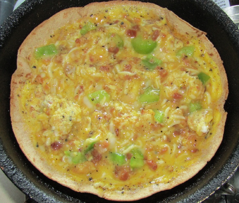 Total time is about eight to nine minutes, and I do not stir the egg mixture for the first half.