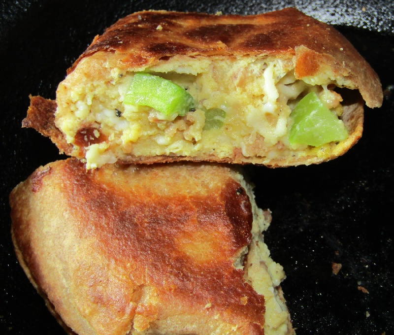 after allowing cooking to continue (while folded), then cut in half to show fully cooked contents: