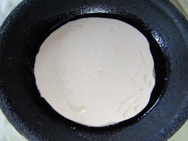 - carefully pour some of the batter into pan, tilting pan to let it spread - the goal is to make it as thin as practical