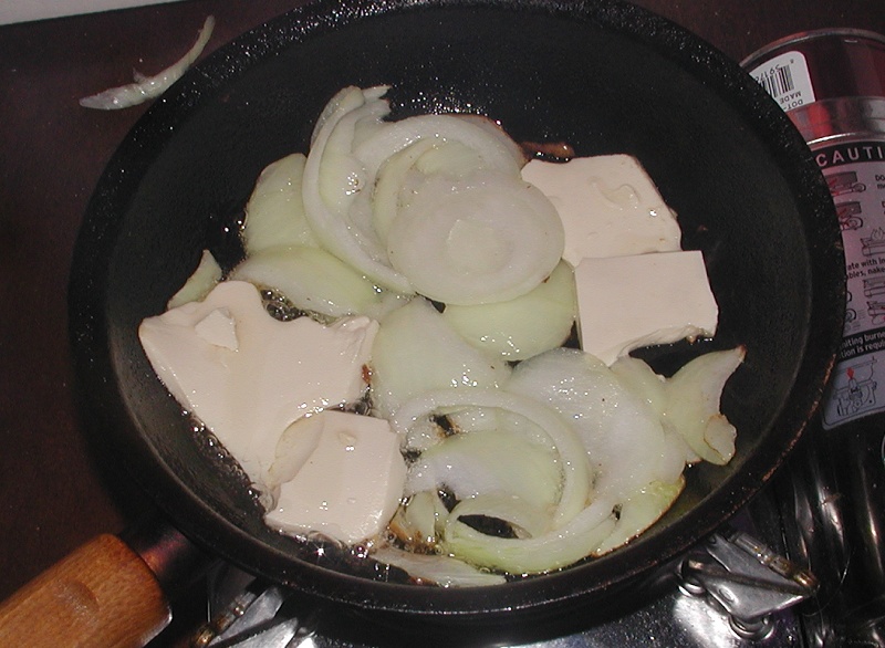 Frying the tofu & onions (enough for two sandwiches):