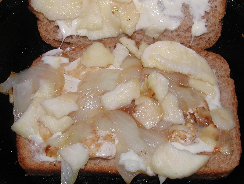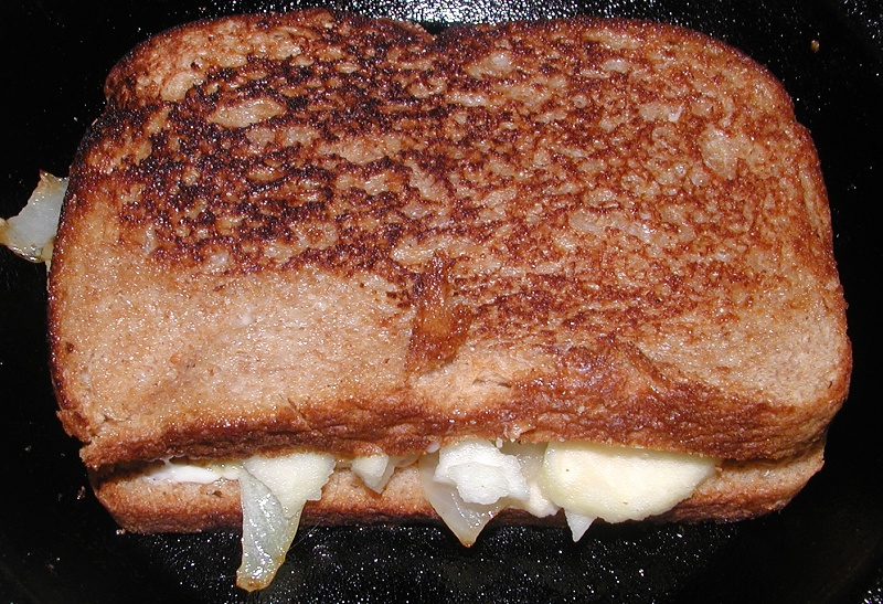SPAM, onions, apples grilled cheese sandwich.