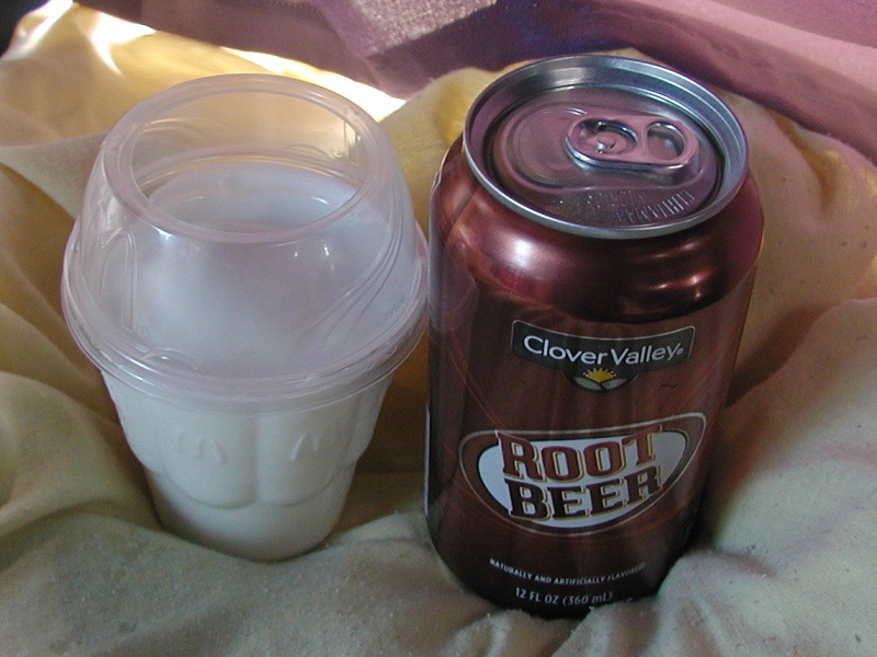 I usually carry some cans of root beer, so I tried combining the two to make a Do-It-Yourself root beer float.